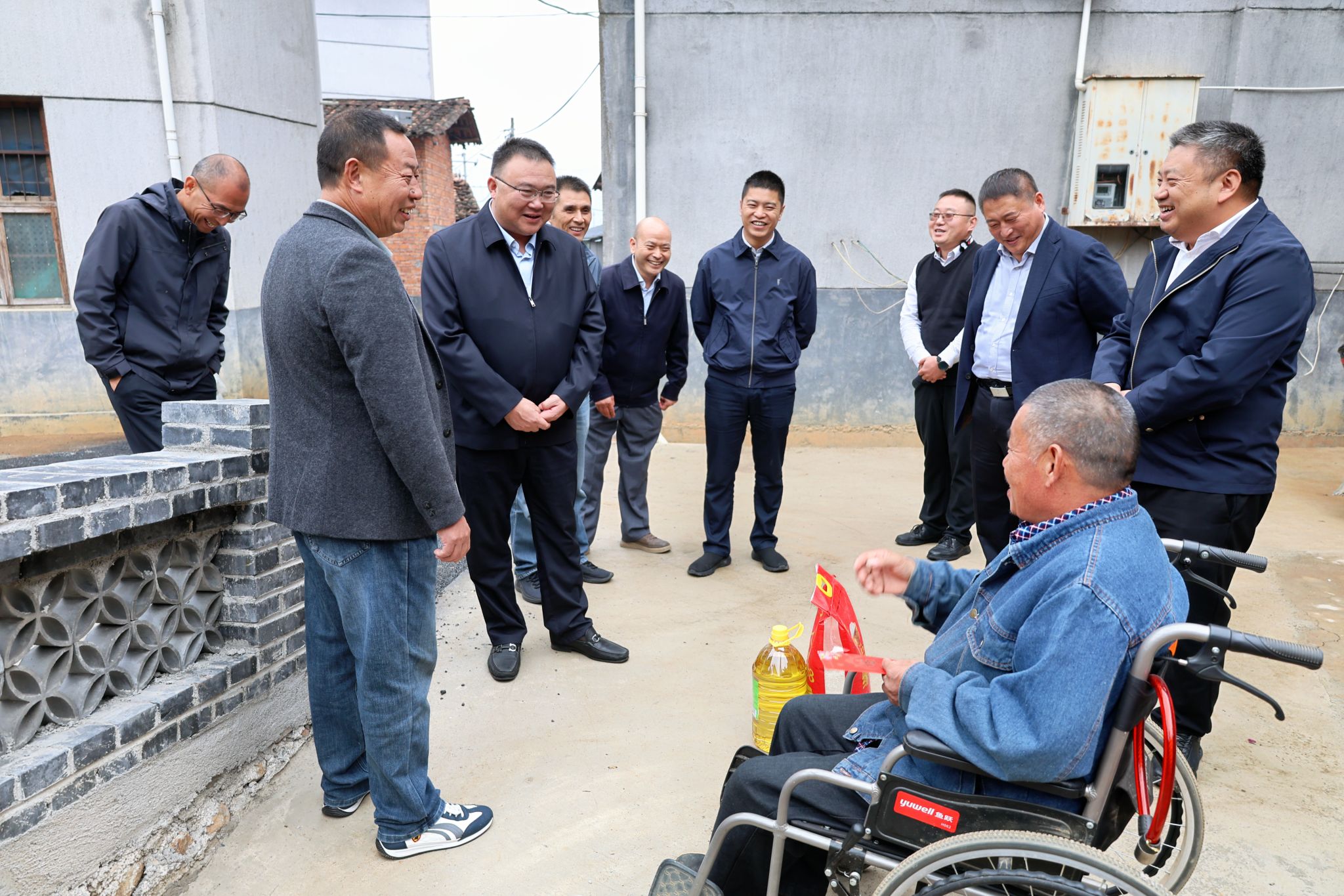 在宏象村敬老院,朱斌一行与老人们亲切交谈,详细询问大家的身体状况、饮食起居及养老服务保障情况,并为他们送上慰问品。朱斌还先后走进2户困难群众家中,送上了慰问品和慰问金。他细致了解他们的家庭收入、医疗保障等情况,鼓励他们保持积极乐观心态、树立信心,在党和政府以及社会各界的帮助下,依托政策扶持和自身努力改善生活。