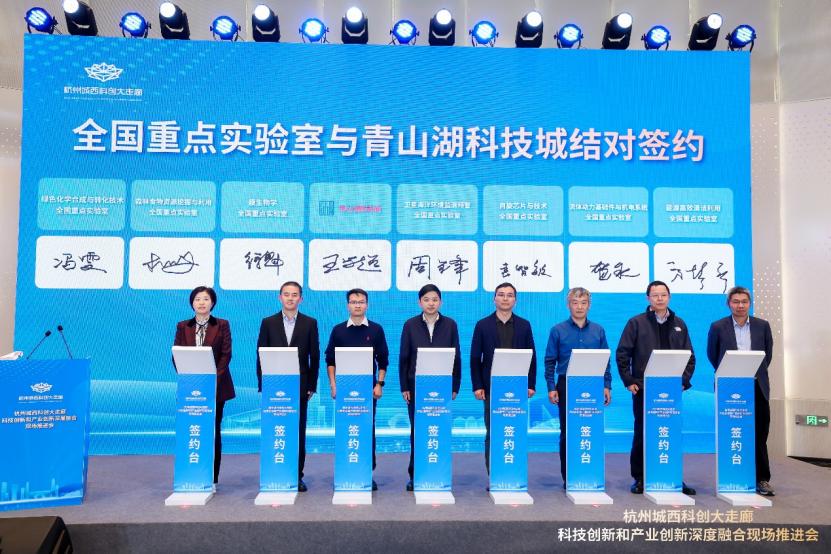本次活动共有21家全国重点实验室与青山湖科技城、紫金港科技城、未来科技城实现“一对一”结对,其中有14家实验室与企业签署合作协议,标志着杭州城西科创大走廊“全国重点实验室+产业平台+科创企业”协同机制全面启动。