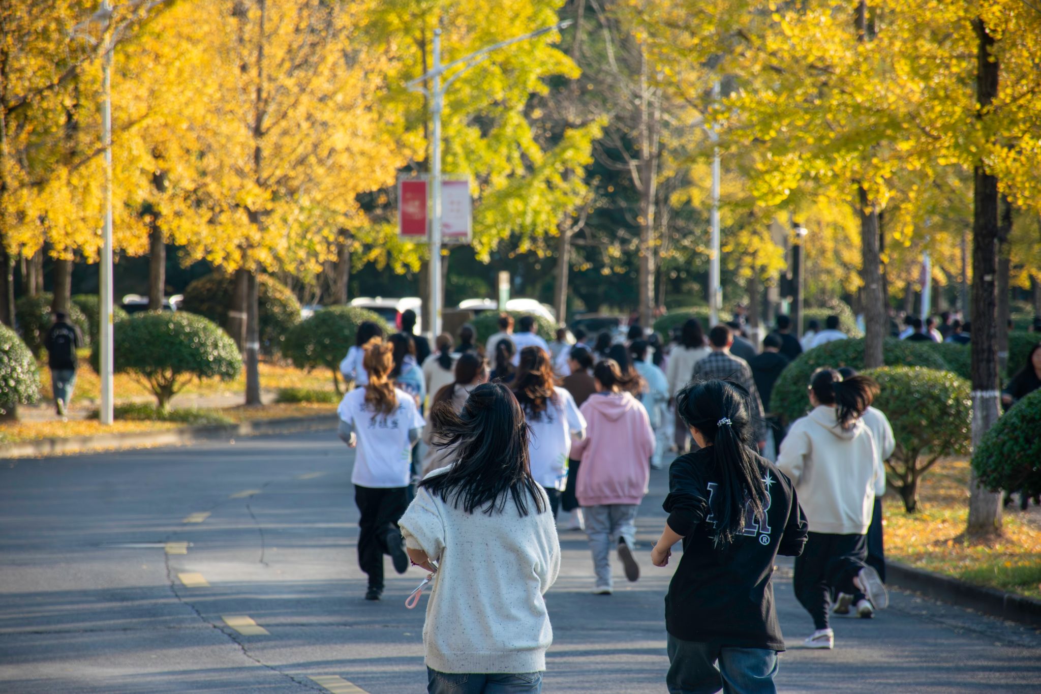 下午15:20,生态健身跑在秋日暖阳中正式启幕。跑道两旁银杏飞舞,青春的活力在空气中跃动。发令枪响的瞬间,选手们如离弦之箭,五彩斑斓的跑鞋踏出青春的节奏,眼神里闪烁着期待与坚定。奔跑中,他们互帮互助,彼此鼓励,携手并进,在挑战自我中挥洒汗水,最终在全场热烈的欢呼声中成功抵达终点。