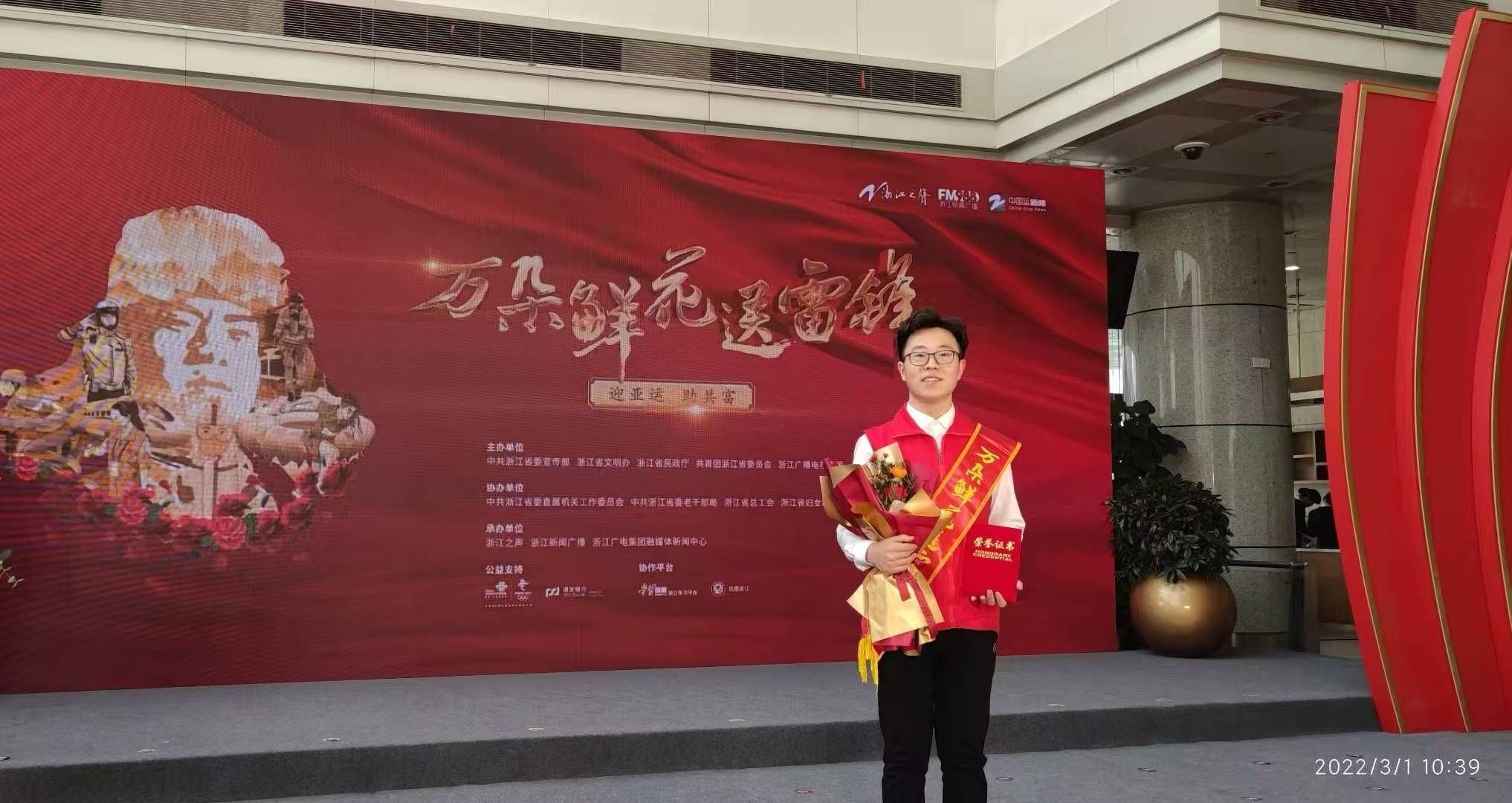 在校期间,他以雷锋精神为指引、以生态保护为己任,累计完成340小时防疫志愿服务,参与多场大型活动零废弃策划,主持慈善联合会两项课题,多次获社会实践先进个人,更被推选为2022年度浙江省“万朵鲜花送雷锋”活动代表……他用实干担当书写浙农林大学子的先锋故事。