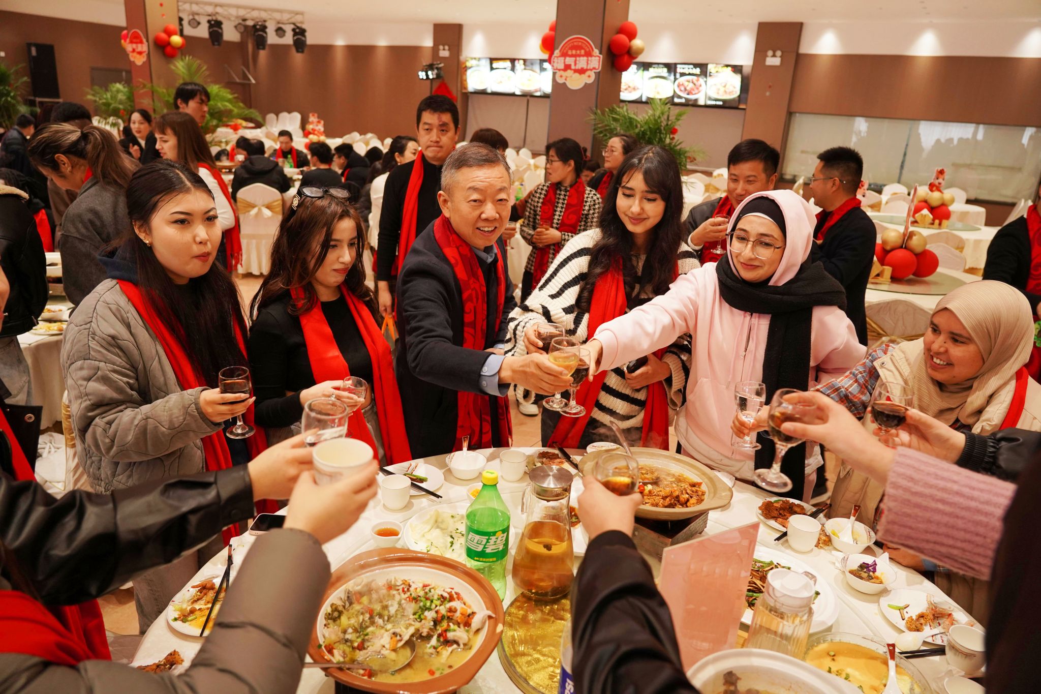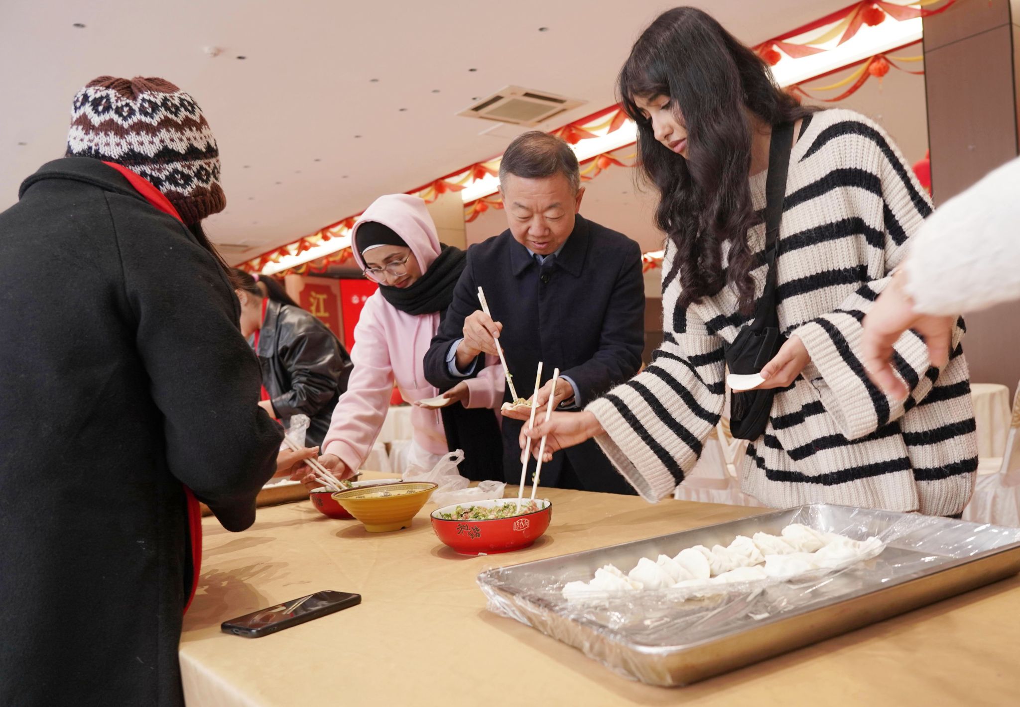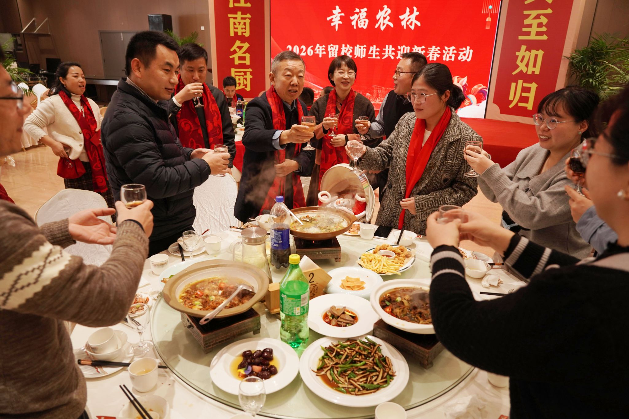 校长吴家胜、副校长徐爱俊出席活动,校办、学生处、研究生院、国教学院等相关单位负责人,全体留校本科生、研究生,留学生代表、各学院教师代表共同参加。大家在欢声笑语中共享丰盛的“团年饭”,感受校园大家庭的温情暖意。