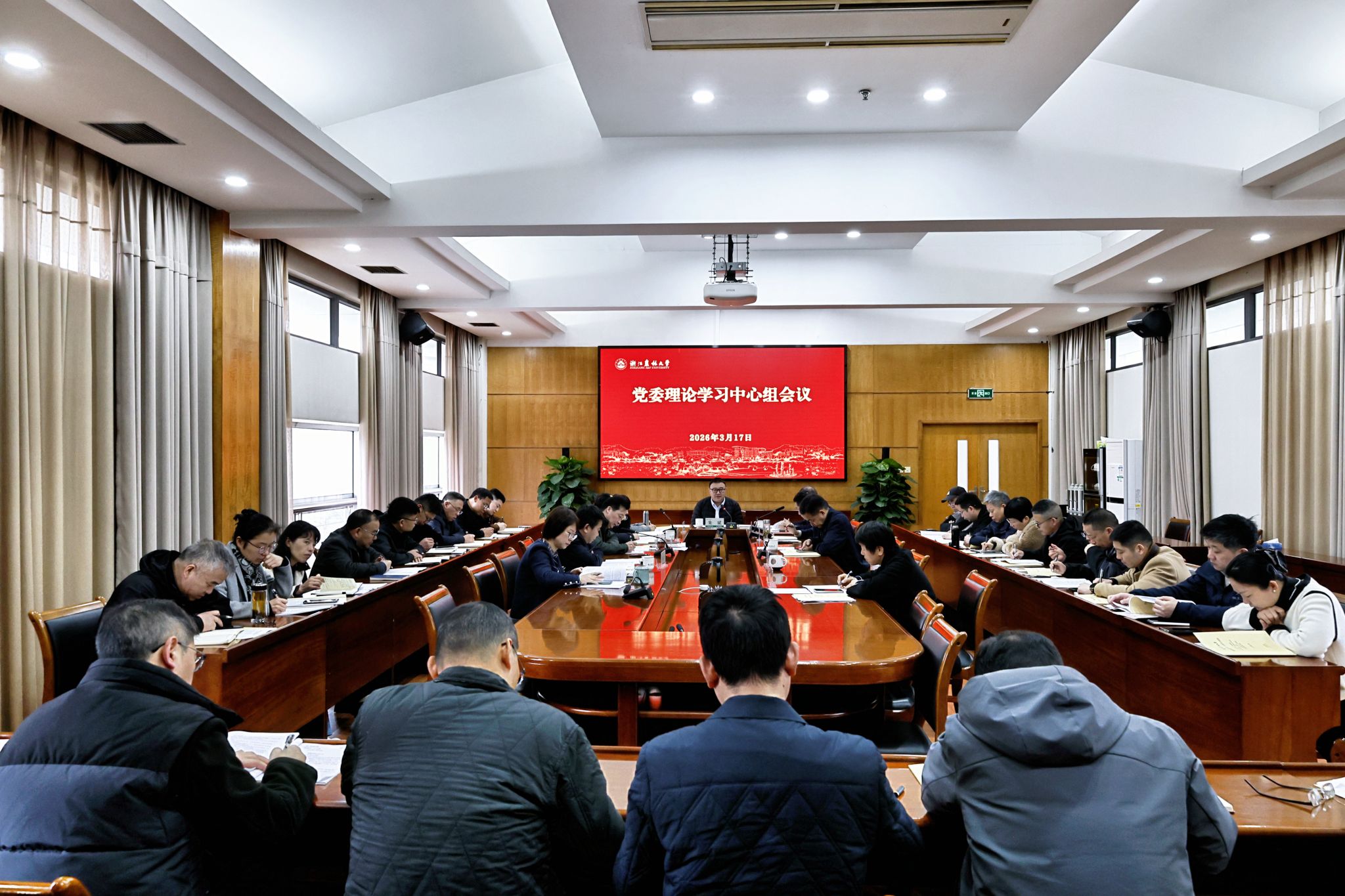 3月17日上午,校党委书记朱斌主持召开党委理论学习中心组扩大会议,深入学习贯彻习近平总书记关于树立和践行正确政绩观的重要论述,专题学习2026年全国两会精神、《中国共产党思想政治工作条例》以及“与时俱进的浙江精神”。