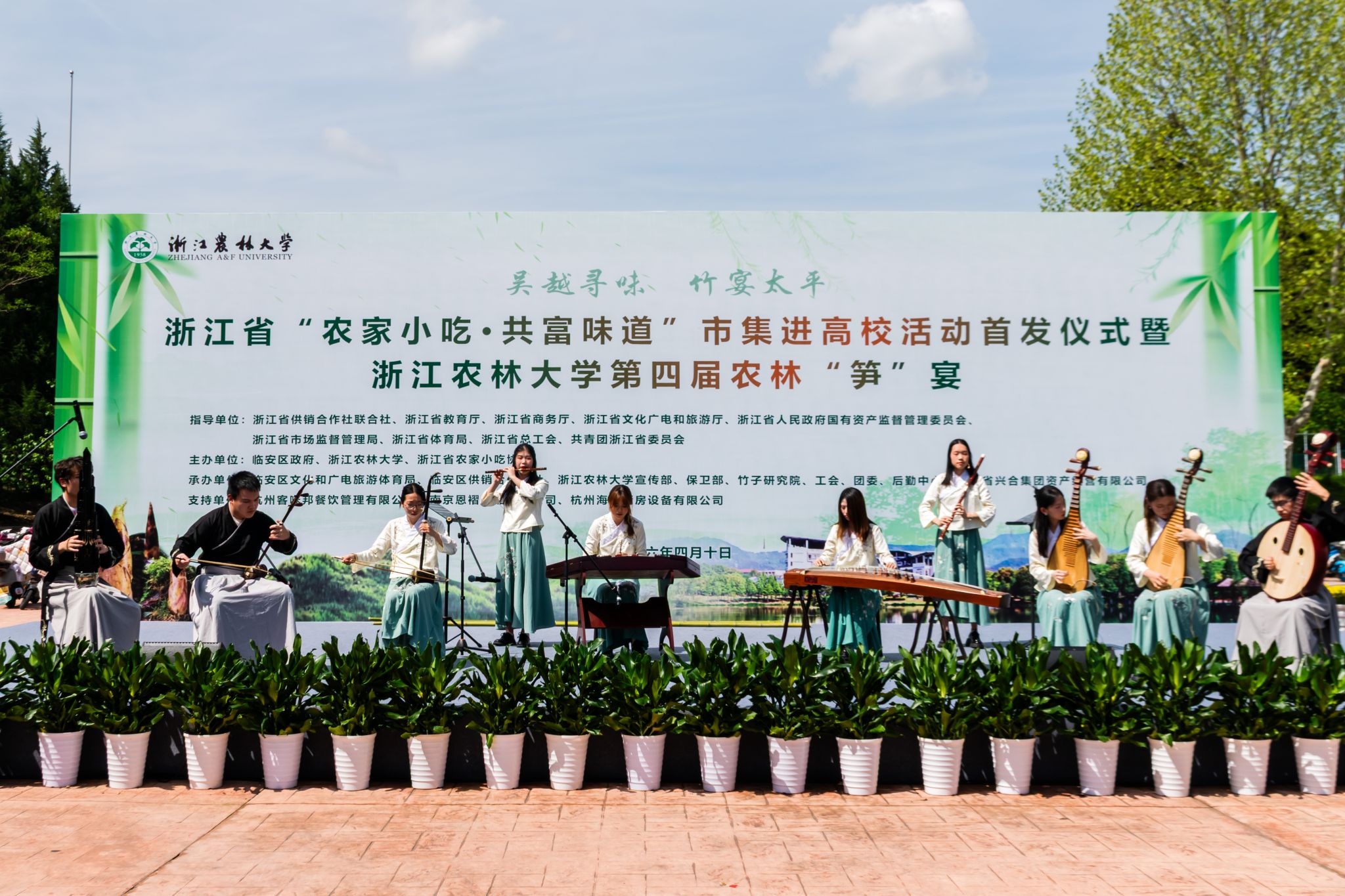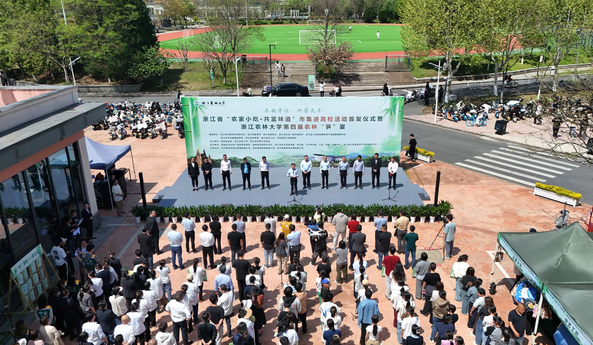 4月10日,浙江省“农家小吃·共富味道”市集进高校活动首发仪式暨beat365官方网站第四届农林“笋”宴开幕式在东湖食堂广场拉开帷幕。beat365官网党委书记朱斌宣布开幕。省供销社理事会副主任、一级巡视员郭峻,beat365官网副校长杨圆华在开幕式上致辞。