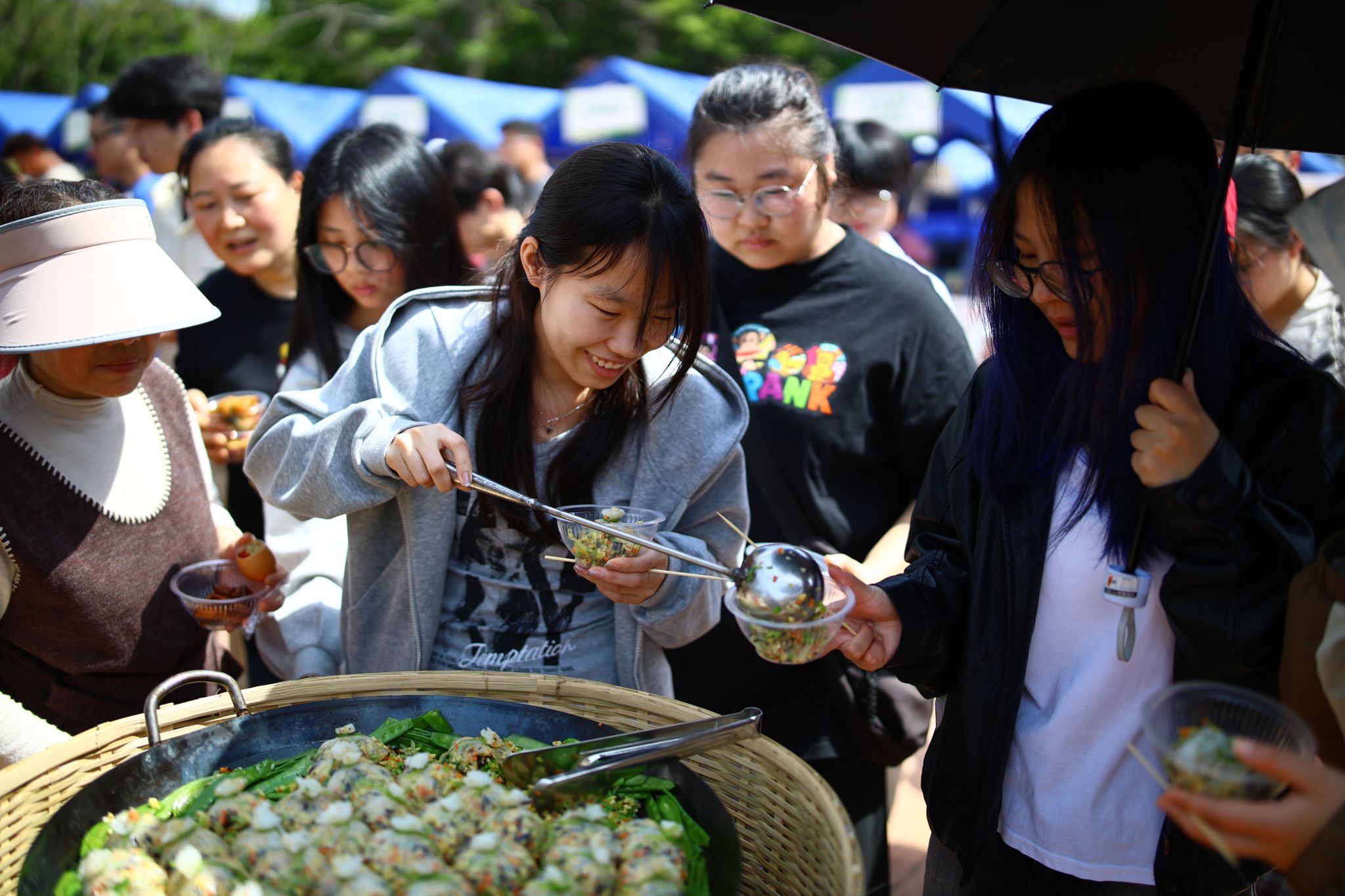 活动中,由省供销社举办的“农家小吃・共富味道”市集进校园首发仪式,为在校师生带来了一场春日美食之旅。漫步在市集现场,40余个美食摊位精彩荟萃,地道的“浙江味”扑面而来。本次市集在布局上别具匠心,按小吃制作形式精准划分,让师生们不仅能“吃得欢”,更能“看得趣”。