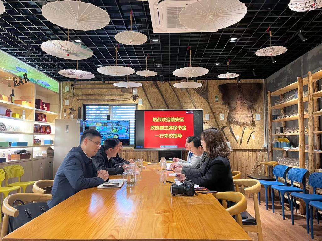 3月25日上午,临安区政协副主席徐书金,临安区广电文化和广电旅游体育局党委委员、文旅体服务中心主任鲍承成一行来校交流,指导亚运会志愿者区校协作工作。校党委委员、宣传部部长倪建均,校团委负责人座谈交流。