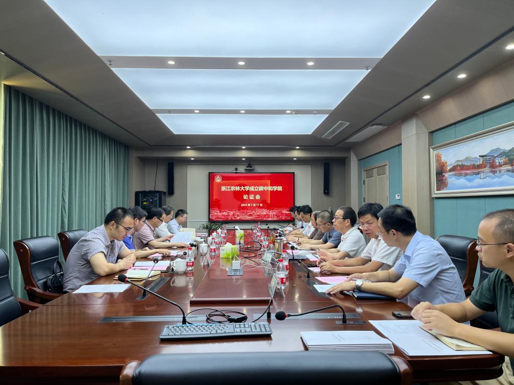 7月17日,学校举行成立碳中和学院论证会。会议邀请浙江省林业厅一级巡视员杨幼平,浙江省农业农村厅科教处处长陈百生,浙江省教育厅高教处二级调研员王国银,浙江省生态环境低碳发展中心副主任吴建,浙江省特级专家、beat365官方网站教授周国模担任论证专家。会议由副校长沈月琴主持。
