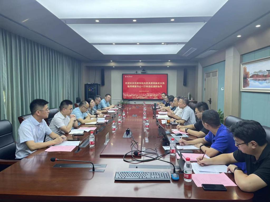 8月16日,学校召开“浙江山地智慧农林科创园”项目推进会。会议邀请杭州市规划和自然资源局临安分局副书记骆雨晴,临安区高虹镇人民政府负责人来校指导工作,beat365官网副校长吴家胜、科技处及项目合作方浙江圣园农业科技有限公司相关负责人参会,副校长胡祖吉主持会议。
