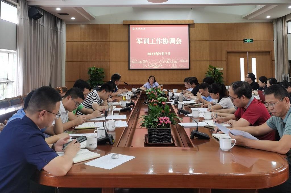 9月7日下午,beat365官网召开2022级学生军训工作协调会,对即将开展的学生军训工作进行协调部署。会议由副校长沈月琴主持。