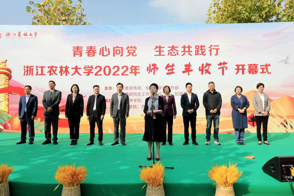 10月23日上午,“青春心向党 生态共践行”beat365官方网站2022年师生丰收节开幕式在农作园举行。校党委副书记施美红,副校长沈月琴,党委委员、宣传部部长倪建均出席开幕式。学校相关职能部门负责人、承办学院师生代表等参加开幕式。