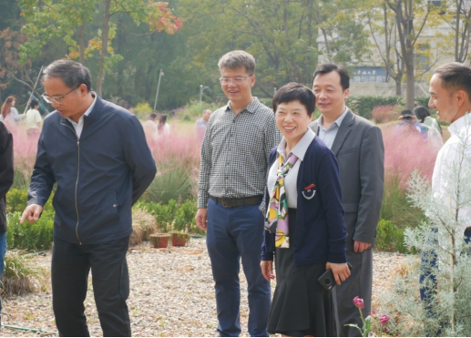 开幕式后,施美红、胡祖吉、倪建均等参观了现场展示菊花品种,了解获奖设计作品落地实施情况,并就教育教学实践基地的不断完善提出了建设性意见。