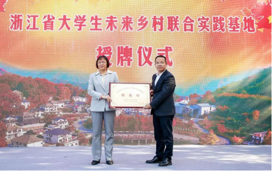 开幕式上,沈月琴为太湖源镇指南村“浙江省大学生未来乡村联合实践基地”授牌。浙江省新农科教育联盟和浙江省乡村振兴研究院(省级新型智库)共同牵头成立新农科教育“育人共同体”——浙江省大学生未来乡村联合实践基地,选择共同富裕基本单元和未来乡村建设试点村,着力打造省大学生未来乡村联合实践基地“百村工程”。指南村作为首批浙江省大学生未来乡村联合实践基地,将为大学生到基地开展实习实践、社会调查、未来乡村规划设计、科技下乡、生态文明传播等提供,助力高等农林人才培养和乡村全面振兴。