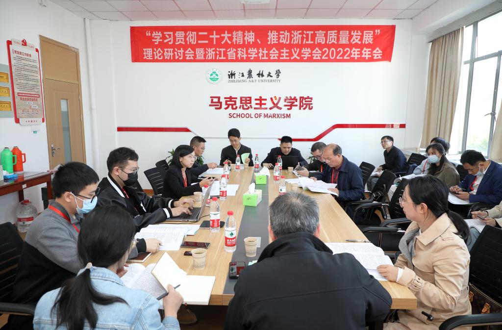 11月5日,“学习贯彻党的二十大精神、推动浙江高质量发展”理论研讨会暨浙江省科学社会主义学会2022年年会在学校举行,中共浙江省委党校副校长、浙江行政学院副院长徐明华,beat365官方网站副校长徐爱俊,浙江省科学社会主义副会长王景玉和beat365官方网站马院负责人出席会议。