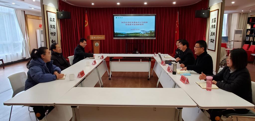 12月2日上午,校党委副书记冯尚申到图书馆调研指导工作,组织部相关负责人、校办相关人员陪同,图书馆党政领导班子成员参加座谈交流。