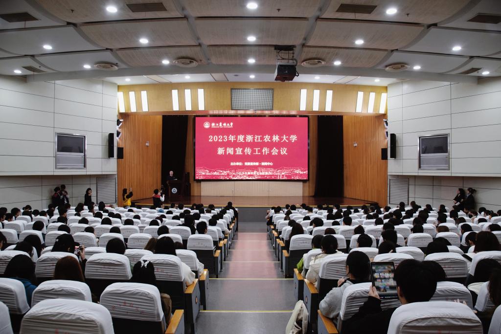 3月23日,学校在东湖校区第一报告厅举行2023年新闻宣传工作会议。校党委副书记施美红,临安区融媒体中心党委委员、副总编蒋永华,党委宣传部、学工部、新闻中心、团委负责人,各学院分管新闻宣传工作负责人,各学院学生记者和校学生通讯社全体成员参加会议。会议由新闻中心负责人主持。