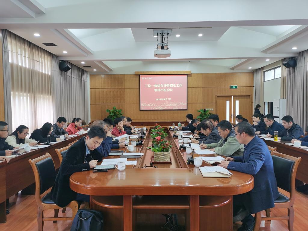会上,学生处负责人介绍三位一体综合评价招生工作方案,与会人员进行了深入交流。三位一体招生工作领导小组全体成员及相关部门负责人参加会议。
