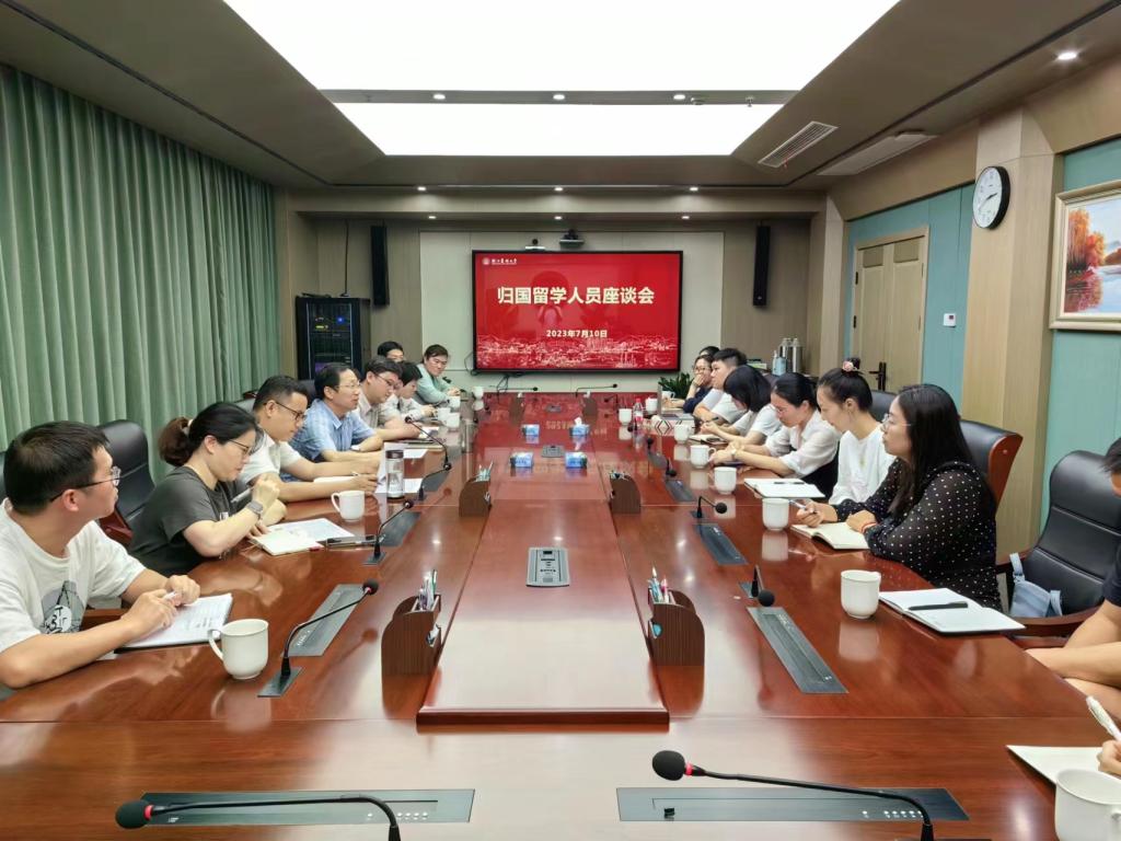 各学院归国留学人员代表参加座谈会,并围绕国际化人才引培、教书育人、学术发展等内容开展了热烈讨论,并提出富有建设性的意见和建议。