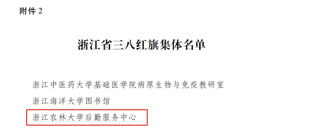 日前,浙江省妇联公布浙江省三八红旗手(集体),浙江省妇联系统先进工作者、先进集体表彰名单。校妇联获评省妇联系统先进集体,后勤服务中心获评省三八红旗集体。