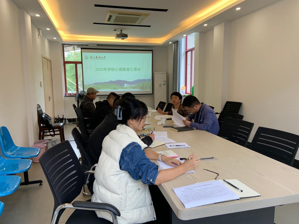 会上,心理中心教师从测评基本情况、测评结果与分析、结论与对策、下一步工作建议等四个方面汇报了2023级新生心理健康普查情况。