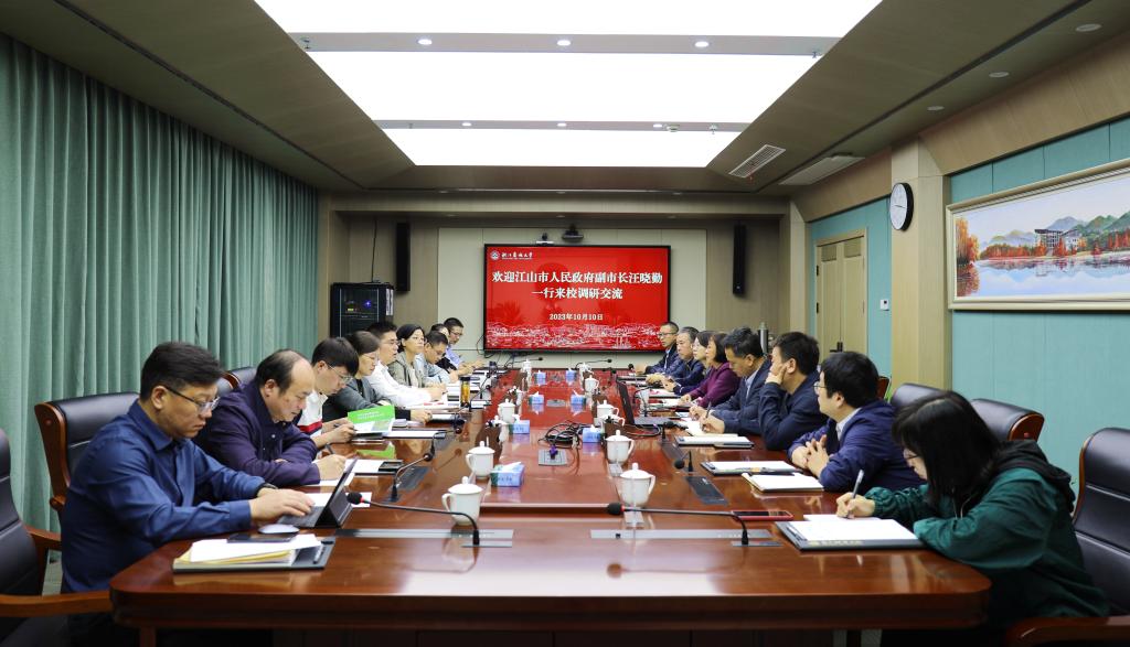 10月10日,江山市副市长汪晓勤一行来校调研交流现代产业学院建设工作。副校长沈月琴出席相关活动。江山市相关部门负责人等参加座谈。