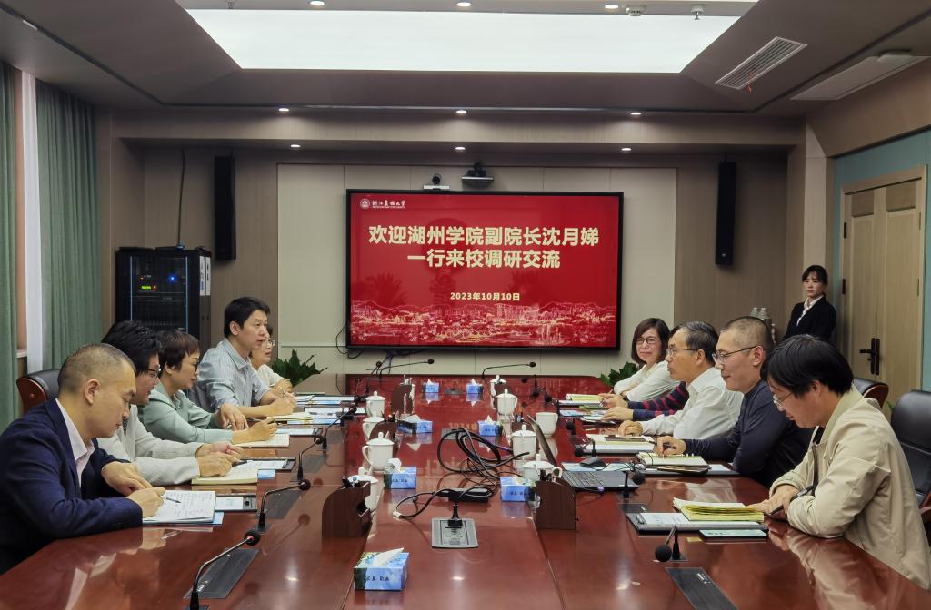 10月10日,湖州学院党委委员、副院长沈月娣一行来beat365官网调研交流。副校长胡祖吉出席座谈会,党委办公室、校长办公室,人事处,经济管理学院,图书馆等部门相关负责人陪同调研。