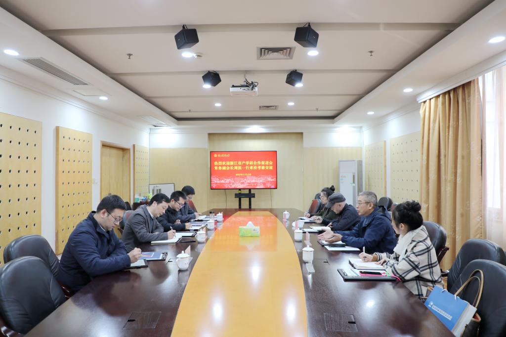 11月13日,浙江省产学研合作促进会常务副会长周滨、副会长兼秘书长潘强龙一行来校考察交流,副校长胡祖吉,校党委委员、宣传部部长倪建均陪同并参加座谈。