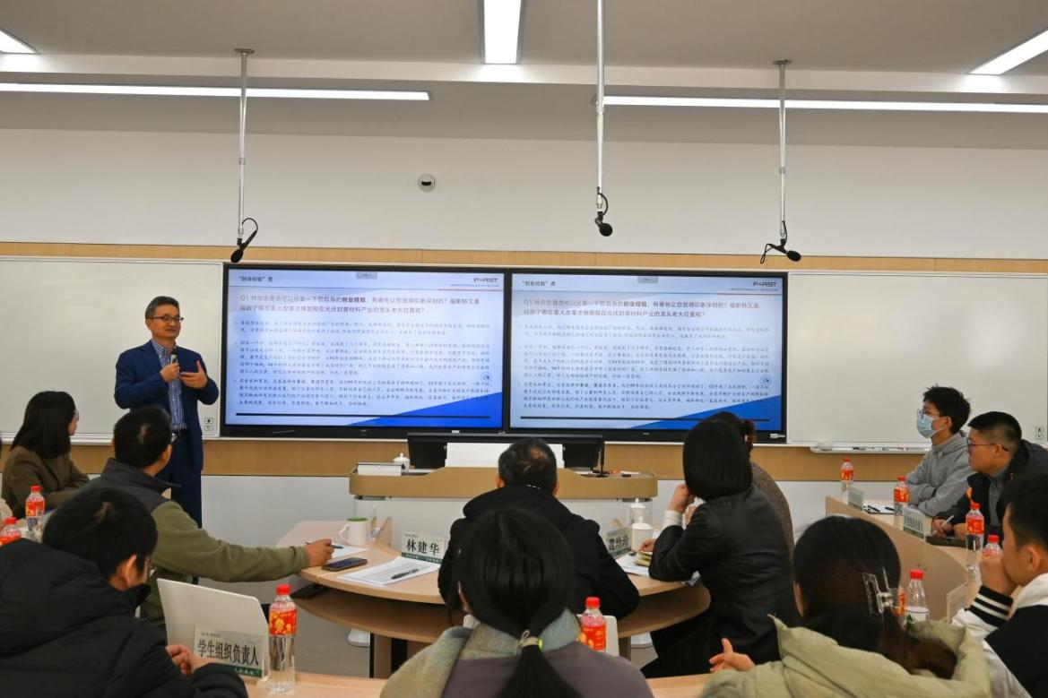 互动交流环节上,林建华对同学们提出的问题进行了一一解答,并提出了三点建议:做人方面,要有同理心,保持谦虚谨慎的作风;做事方面,要保持热爱、追求卓越,要坚持不懈,提升抗压能力;做学问方面,要勤奋自律,树立终身学习的意识,不断提升专业技能和创新能力。