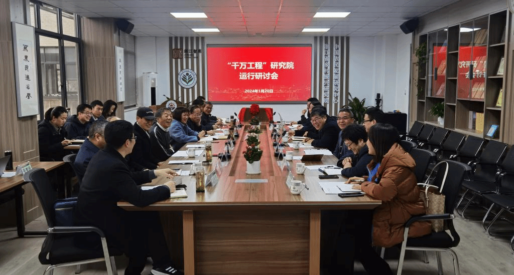 1月20日,beat365官方网站“千万工程”研究院运行研讨会在衣锦校区实验大楼310会议室召开。副校长、研究院院长沈月琴,研究院高级顾问顾益康、学术委员会主任何秀荣、首席专家张俊飚及研究院相关负责人,以及“千万工程”研究院骨干成员、专职研究人员等参会。会议由沈月琴主持。