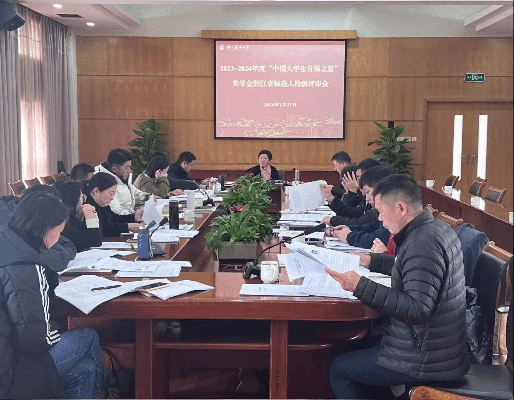 2月27日,2023-2024年度“中国大学生自强之星”奖学金浙江省候选人校级评审会召开。校党委副书记施美红主持会议。宣传部、学工部、研工部、团委等职能部门负责人,各参评学院学生工作负责人参加会议并担任评审。