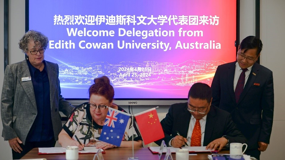 4月25日,澳大利亚伊迪斯科文大学理学院院长Elizabeth Watkin教授、国际部国际关系主任Helen Vella Bonavita、国际部国际合作经理郭凤梅、全球事务拓展与管理经理Marija Petrovska博士一行来校访问。校党委委员、动科动医学院院长宋厚辉,国际处、数计学院、艺术学院和园艺学院等相关负责人与来宾进行了会谈。