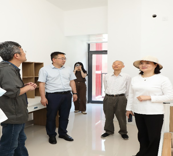 会前,陈思静、部分专家对D区学生项目现场进行踏勘,还对B11、B12号学生宿舍项目完成情况进行综合检查,对项目的完成情况给予了充分肯定。