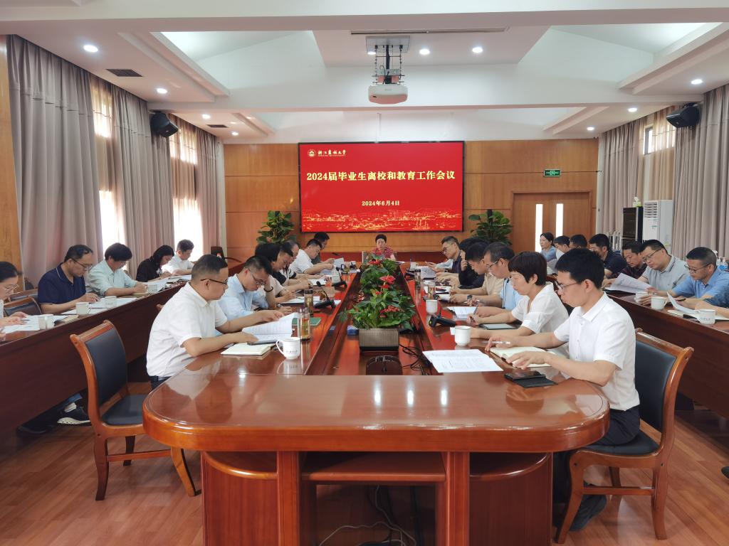 6月4日,学校召开2024届毕业生离校和教育工作会议,旨在进一步做好毕业生工作,确保学生安全、平稳、文明、有序离校,会议由校党委副书记施美红主持。