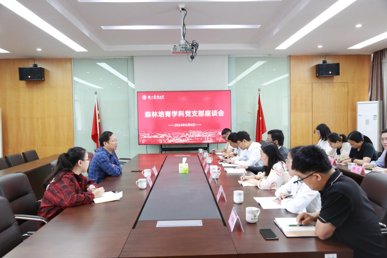 6月6日,校党委副书记冯尚申到森林培育学科党支部走访,并与青年教师代表进行座谈交流。