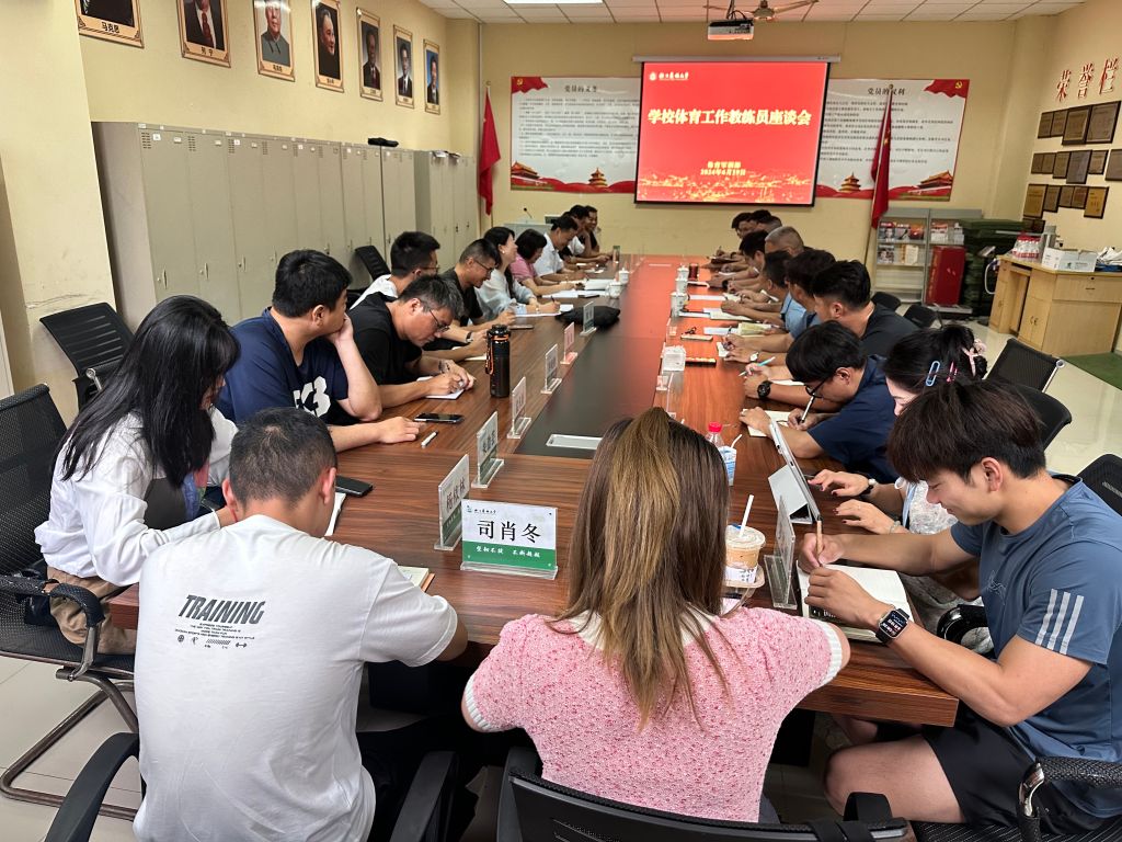 6月19日,beat365官网体育工作教练员座谈会在东湖校区风雨操场会议室举行,副校长沈月琴出席座谈会,教务处负责人,体军部党政领导班子成员、竞训中心主任和全体教练员参加座谈。