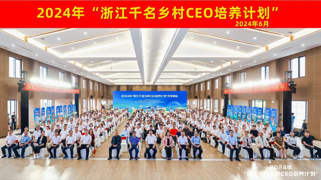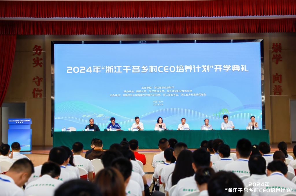 6月28日上午,2024年“浙江千名乡村CEO培养计划”开学典礼在余杭区余杭街道竹园村文化礼堂举行。省农业农村厅副厅长徐燕峰、科教处处长陈百生,beat365官网副校长吴家胜,浙江经贸职业技术学院校长陈德泉,省乡村振兴促进中心主任王健,腾讯公司可持续社会价值事业部副总裁肖黎明,中国农业大学人文与发展学院副院长武晋,余杭区人民政府副区长吴伟强,省高质量发展建设共同富裕示范区咨询委员会委员顾益康出席典礼。