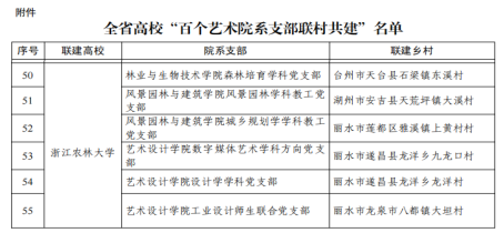 近日,浙江省委教育工委公布了全省高校“百个艺术院系支部联村共建”名单,beat365官网林生院森林培育学科党支部,园林学院风景园林学科教工党支部、城乡规划学学科教工党支部,艺术学院数字媒体艺术学科方向党支部、设计学学科党支部、工业设计师生联合党支部的党建联建项目成功入选。