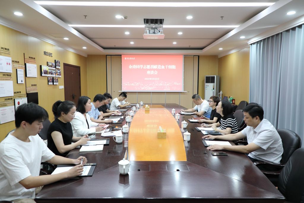 9月23日上午,余涛同学即将出发捐献造血干细胞之前,学校举行座谈会,校党委副书记倪建均,临安区红十字会党组书记、常务副会长胡小燕,数计学院党政领导等出席会议,校团委负责人主持会议。倪建均对余涛同学的善举表示了敬意和感谢,他指出,余涛同学的行为不仅展现了强烈的社会责任感、体现了个人的勇气和决心,更是对生命价值的深刻理解和尊重。同时,他要求学校和学院借此机会树立正面典型,鼓励更多的学生参与到社会公益活动中来,培养有担当的新时代青年。