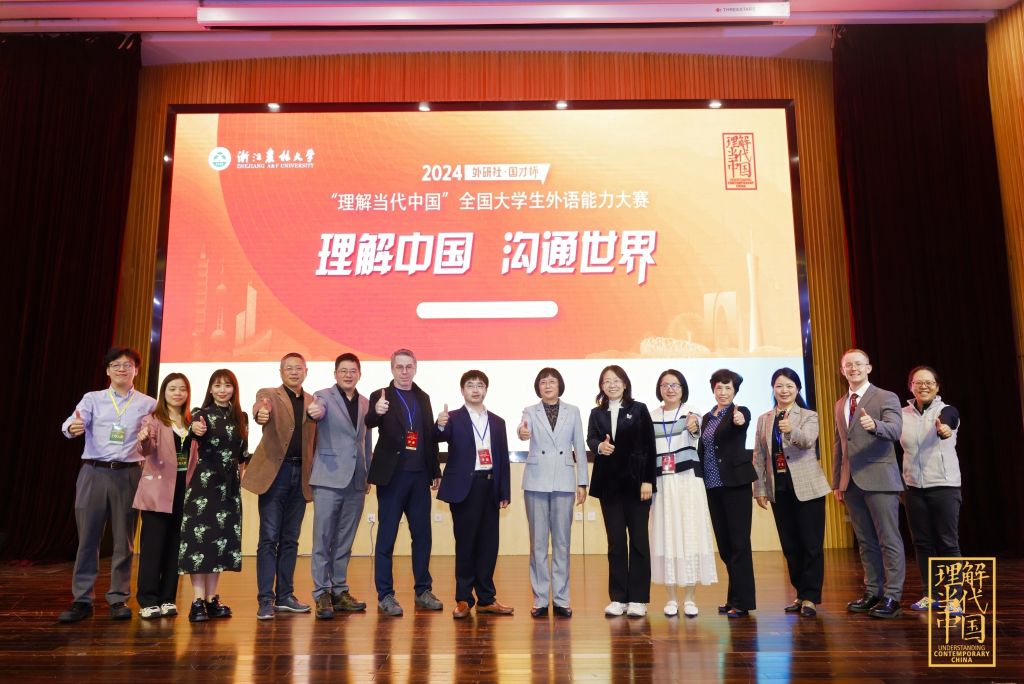 11月1日至3日,2024“外研社·国才杯”“理解当代中国”全国大学生外语能力大赛浙江赛区比赛(口译赛项、演讲赛项)在beat365官网举行。口译赛项及演讲赛项颁奖典礼分别在东湖校区国际报告厅和图书馆第一报告厅举行。副校长沈月琴出席颁奖典礼并致辞。beat365官网教务处负责人,高等教育学会大学外语分会、外语教学与研究出版社、省内各高校外国语学院相关负责人等出席典礼。