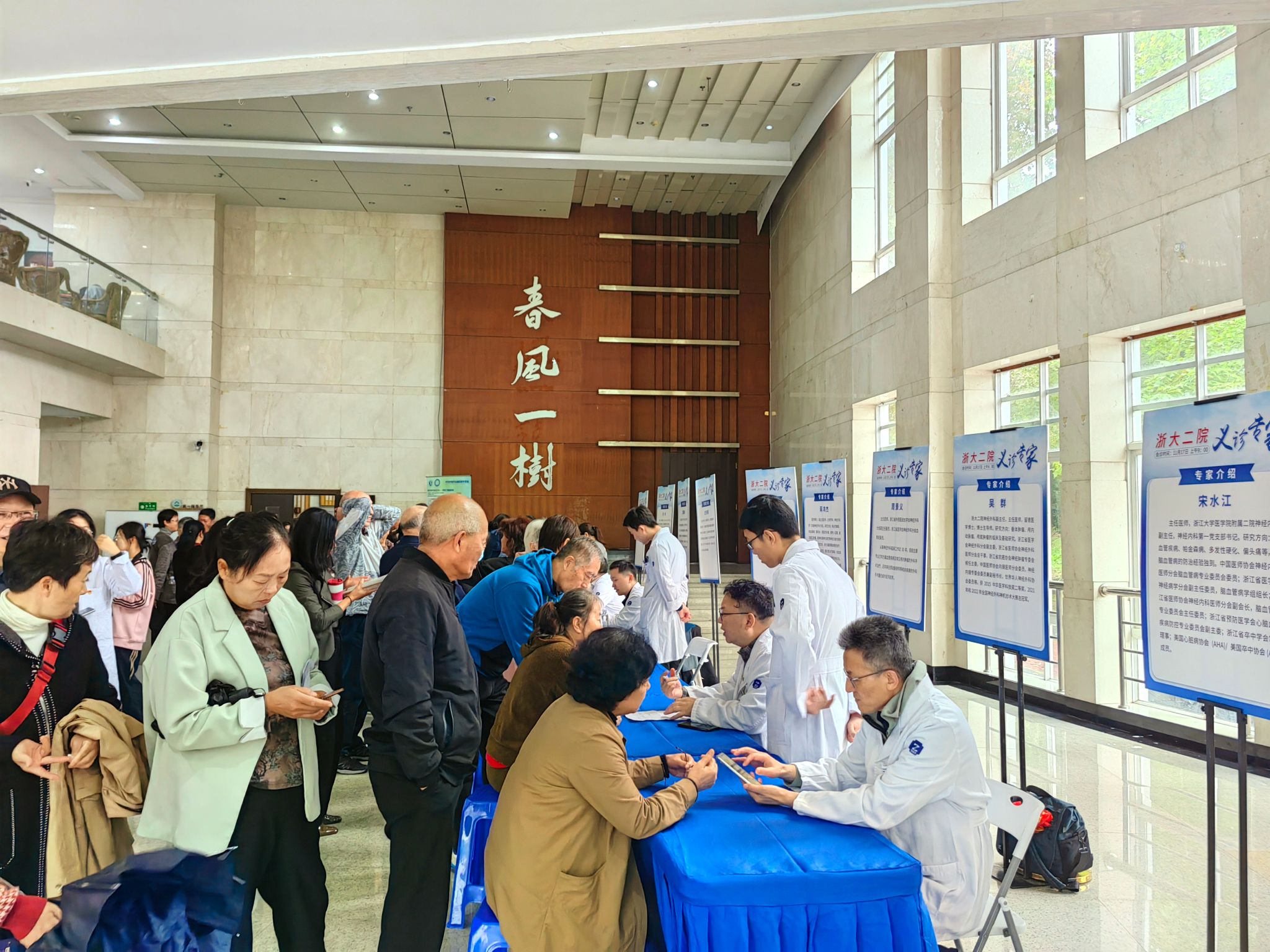 此次义诊团队由浙大二院神经外科、神经内科、内分泌科等科室12位专家医生组成。义诊现场有近百人参加,氛围热烈,深受大家欢迎。专家们认真细致地与前来咨询的老同志进行沟通,详细询问不适症状、用药情况、既往诊疗经历并耐心解答,同时还开展测血糖、量血压服务。