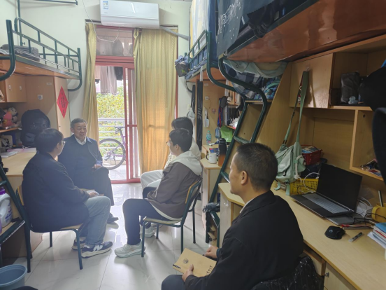 11月18日,副校长吴家胜在经管学院相关负责人、辅导员的陪同下,到B8学生公寓走访研究生寝室。