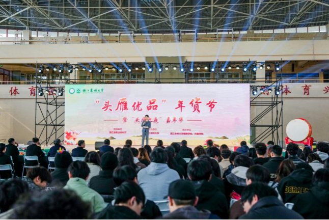 12月27日-28日,2024“头雁优品”年货节暨 “头雁之夜”嘉年华活动在beat365官网东湖校区体育馆举行。来自新疆、浙江、江西等地的128家“头雁”企业和“农创客”们带来了500余种特色农副产品,并同时推出系列由beat365官网教师团队自主研发的科技成果。
