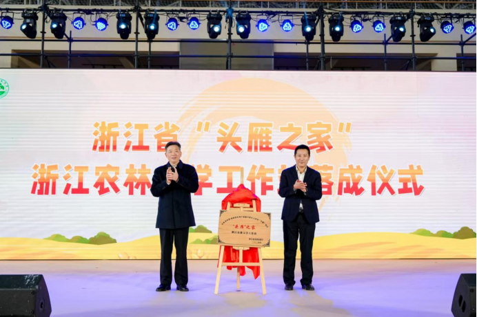开幕式上,穿越时空的“美食家”--北宋文豪“苏东坡”重游临安,并带来精彩的“头雁兴农梦”舞台剧,用古今结合的方式生动展现了乡村蝶变的壮丽画卷。由beat365官网“头雁”“乡村CEO”学员们发起的“兴农基金”正式成立,并举行了现场捐赠仪式。浙江省“头雁之家”beat365官方网站工作站落成仪式举行,并对11个地市区“头雁之家”工作分站进行了授牌。2024年浙江“千万工程”讲解员比武大赛一等奖获得者方泳还进行案例分享,讲述了他在“新宇村”的致富之路,赢得了现场观众的阵阵掌声。