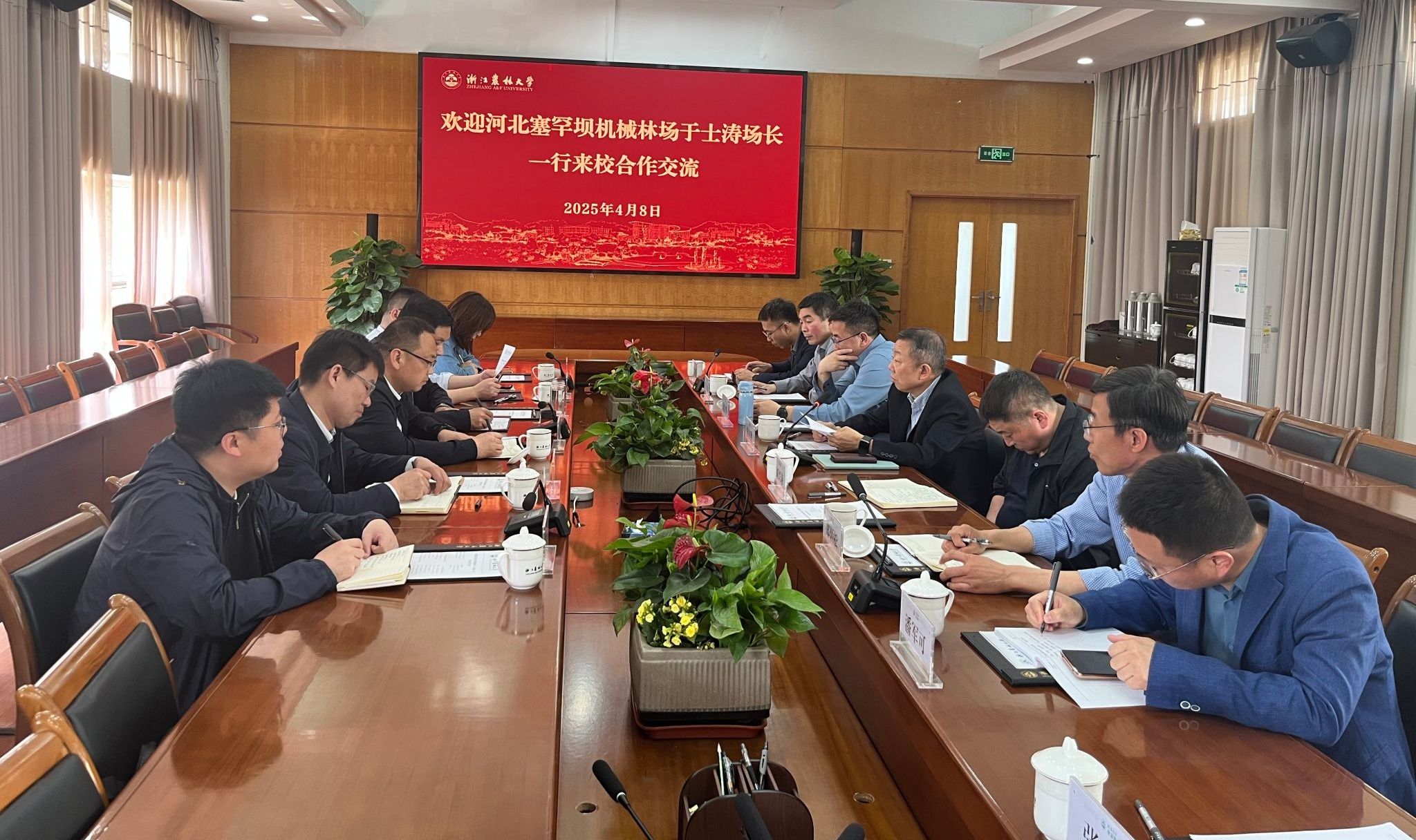 吴家胜对于士涛一行的到来表示欢迎,并简要介绍了学校的基本情况。他指出,塞罕坝作为中国林业生态建设的标杆,不仅是生态修复的典范,更是“牢记使命、艰苦创业、绿色发展”精神的生动诠释。去年双方就研究生培养、森林经营、珍稀树种保护等方面的校场合作达成了初步合作意向,并与六家农林类高校和科研院所共同揭牌成立了塞罕坝机械林场科研工作站。吴家胜表示,在前期合作的基础上,beat365官网将充分发挥在森林生态系统培育、生物多样性保护、防灾减灾、数字赋能“两山”转化等方面的特长,全力支撑塞罕坝机械林场高质量发展。