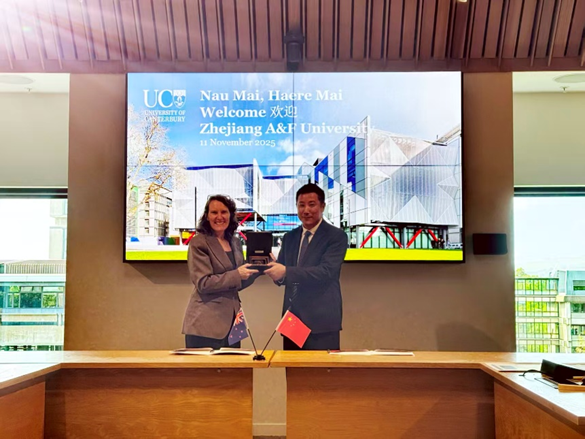 徐爱俊一行访问了新西兰坎特博雷大学,会见了副校长Catherine Moran教授及林学专业、国际处相关负责人,双方就进一步推进两校合作,在学生长短期交流、本硕衔接、共建联合实验室等方面的合作进行了深入探讨。