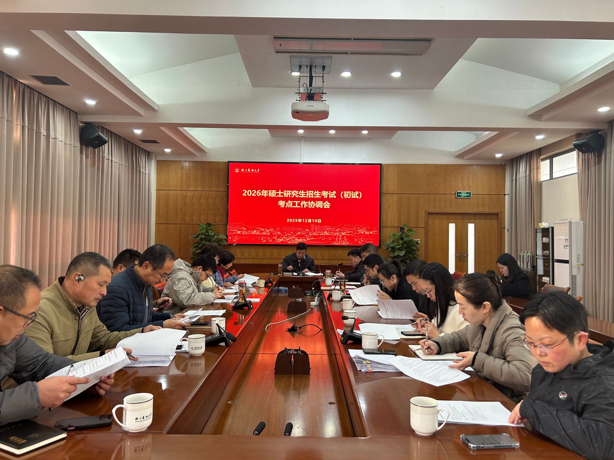 12月10日,学校召开2026年硕士研究生招生考试(初试)考点工作协调会,会议由副校长徐爱俊主持。