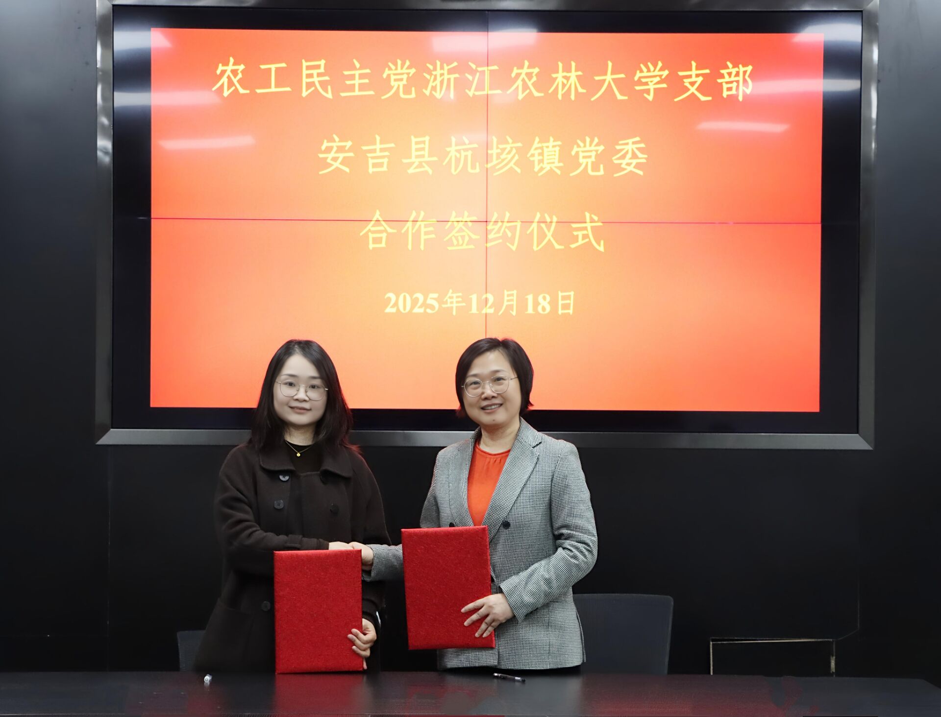 12月18日,农工党beat365官方网站支部与安吉县杭垓镇党委合作签约仪式在杭垓镇举行。校党委副书记、统战部部长倪建均,校党委宣传部部长、统战部常务副部长晋杜娟,统战部相关工作人员、农工党学校支部部分党员、杭垓镇相关负责人和部分村负责人参加活动。农工党学校支部主委应叶青与杭垓镇党委负责人签订合作协议。