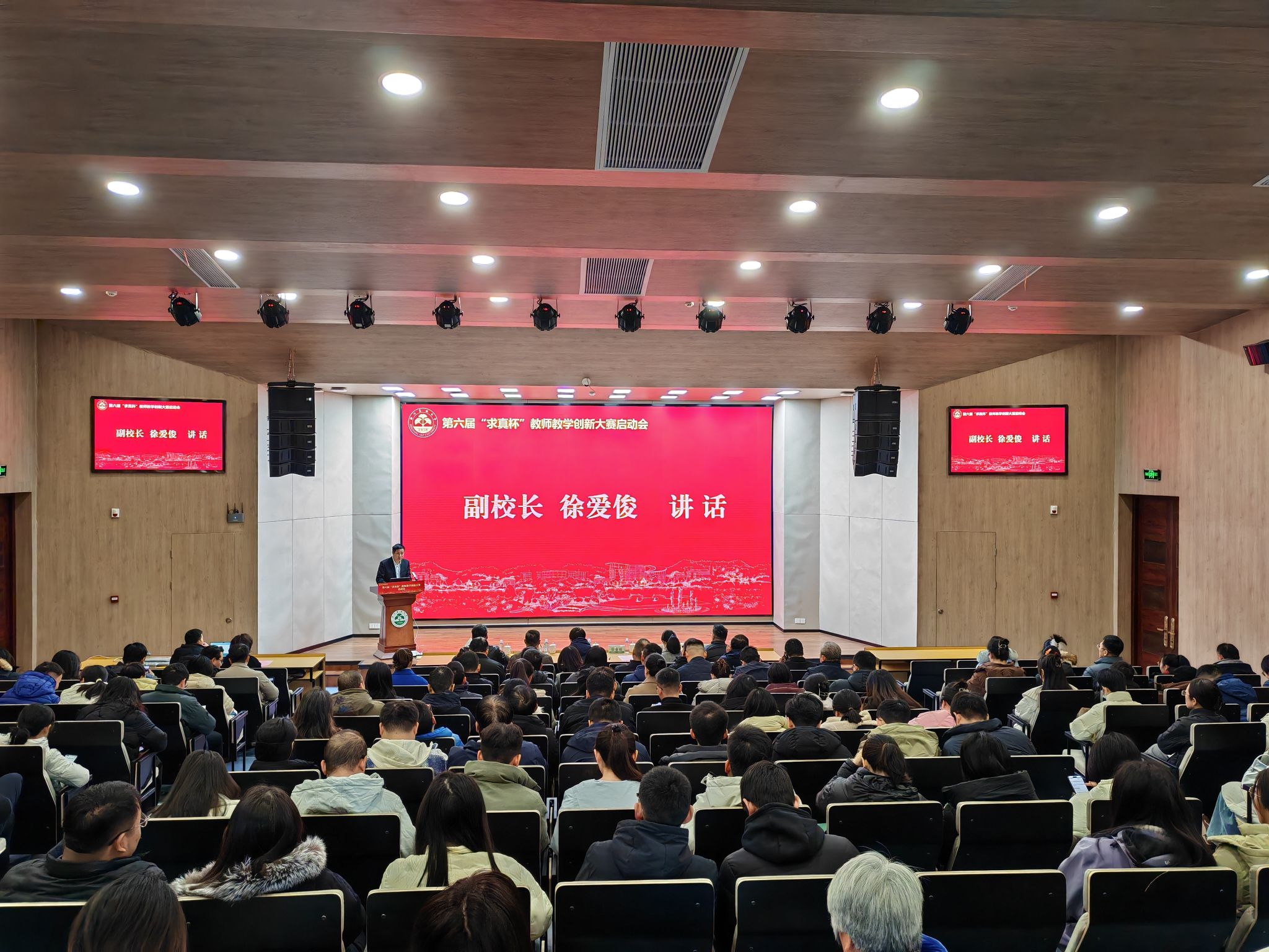 1月12日上午,beat365官方网站第六届“求真杯”教师教学创新大赛启动会在东湖校区学三国际报告厅举行。副校长徐爱俊出席活动并讲话。