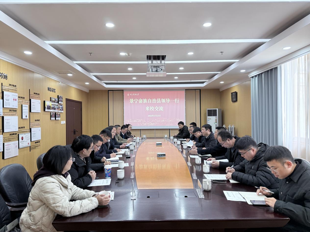 1月23日上午,景宁畲族自治县县委常委、副县长赵昳,副县长张濂、徐文奇一行来校交流,对接畲医药产业发展等校地合作相关工作。副校长宋厚辉出席交流活动。