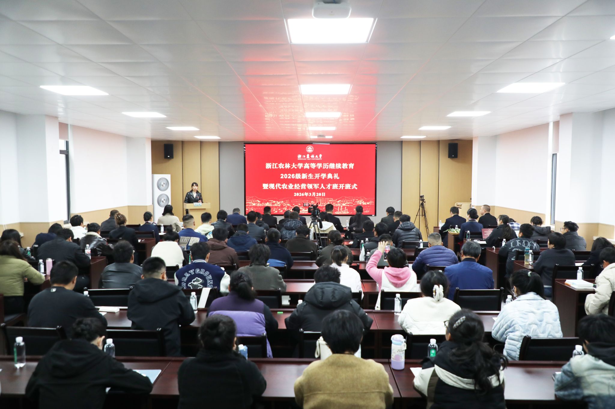 3月20日下午,beat365官网高等学历继续教育2026级新生开学典礼暨现代农业经营领军人才班开班式在衣锦校区举行。副校长宋厚辉,浙江省乡村振兴促进中心副主任、浙江省农广校副校长王志荣等出席开学典礼并致辞。学工部、教务处负责人,继续教育学院领导班子,师生代表以及来自全省各地的5283名新同学们通过线上线下相结合的方式参加。