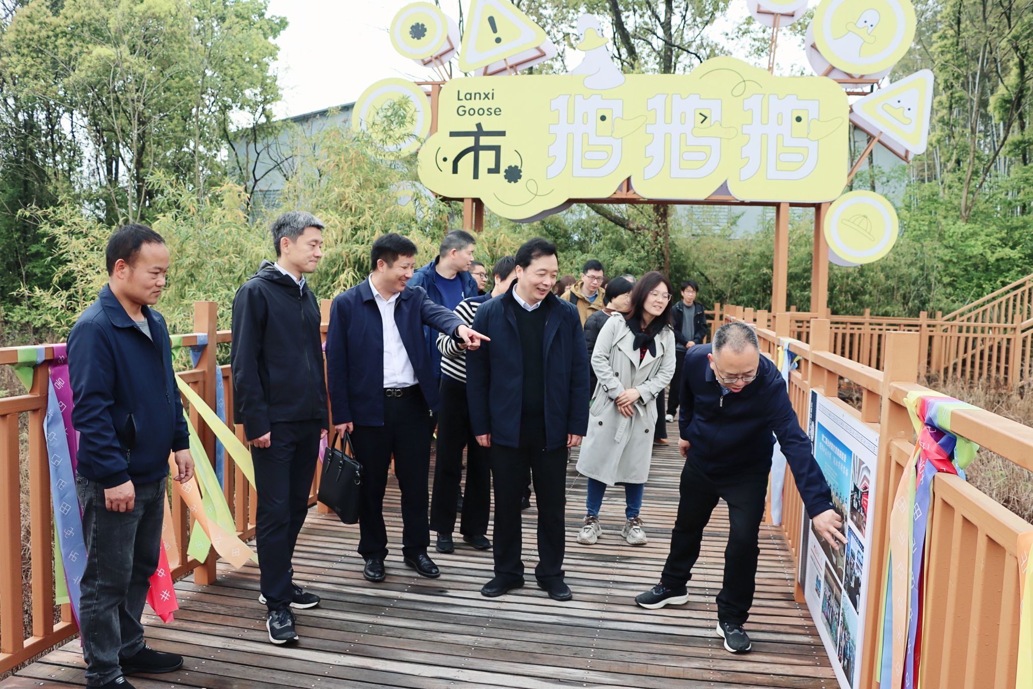 在兰溪市,代表们来到民盟中央、民盟浙江省委结对帮扶对象,同时也是民盟beat365官方网站总支重点服务的乡村——游埠镇范院坞村。大家先后参观了范院坞红美人驿站、森林鹅馆,实地了解村庄特色产业发展、乡村振兴最新进展,并与兰溪市委统战部、民盟兰溪市委进行了座谈交流。座谈会上,徐爱俊介绍了民盟学校总支在深度参与范院坞村发展中开展的系列帮扶工作。他表示,学校将继续依托党派资源,精准对接区域产业链升级、果树种植、乡村人才培育等需求,持续赋能范院坞村推进乡村全面振兴。倪建均表示,民盟学校总支帮扶范院坞村建设成效突出,校地双方将立足良好合作基础,进一步紧密携手,推动范院坞村所在片区未来产业提质增效、乡村文化繁荣发展。