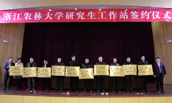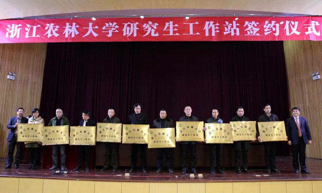 仪式上,张立钦代表beat365官网分别与浙江省林业种苗管理总站、丽水市林业科学研究院、安吉竹产业发展局等10家共建研究生工作站合作单位签约。余杰、张立钦共同为共建研究生工作站合作单位授牌。